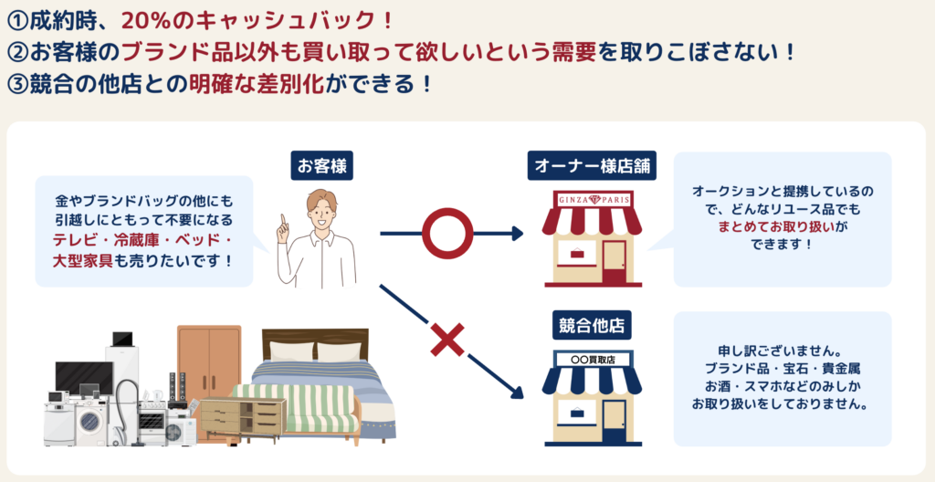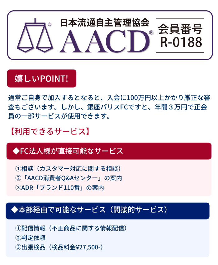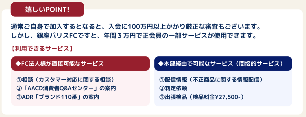 銀座パリス本部が加盟しているため、消費者へ「偽物を扱わない」「流通経路が安心」という信頼性をしっかり訴求できます。