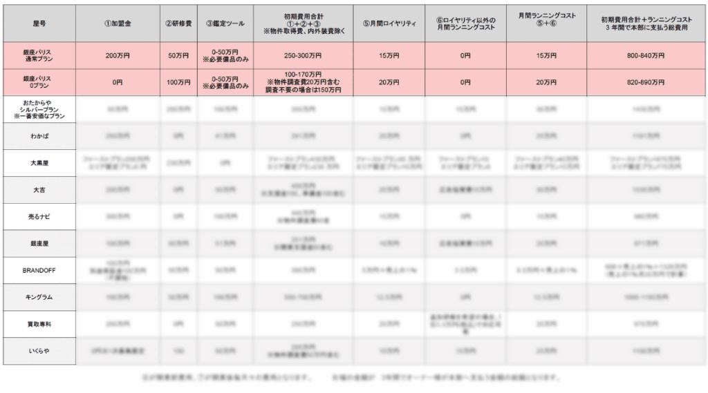 個人的には、開業前に投資回収までの目処がしっかり立てられるか、その実績があるかが重要だと思いますので、加盟店選びの比較ポイントに入れることをオススメします。