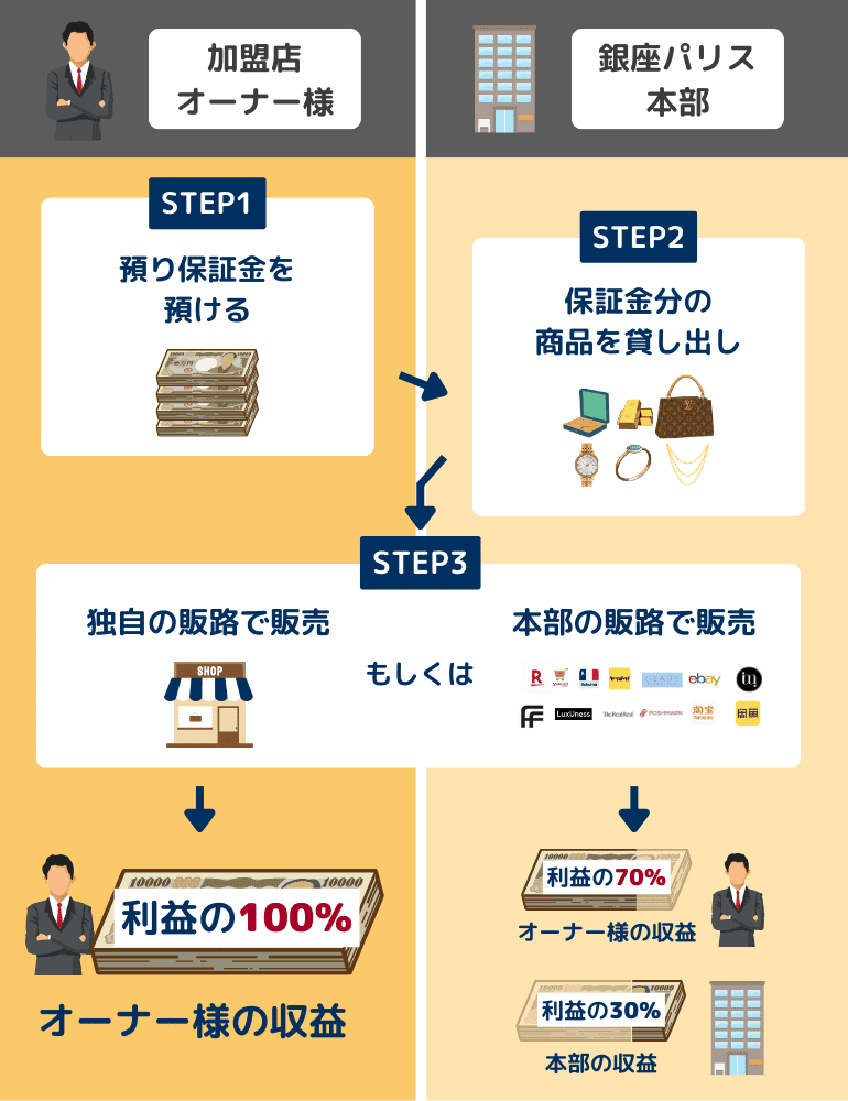 本部の商品を加盟店が販売する2年間限定のサポートです。